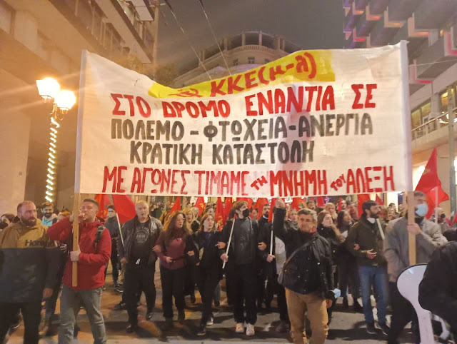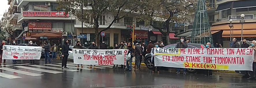 Στην Θεσσαλονίκη σήμερα το μεσημέρι, ημέρα αγωνιστικής μνήμης του δολοφονημένου από αστυνομικό, μαθητή Αλέξανδρου Γρηγορόπουλου, εκατοντάδες εργαζόμενοι, άνεργοι και νέοι αψήφησαν την χουντική κυβερνητική απαγόρευση των συγκεντρώσεων. Ένωσαν τις φωνές τους και κρατώντας τις απαραίτητες υγειονομικές προφυλάξεις συγκεντρώθηκαν σε διάφορα σημεία της πόλης.