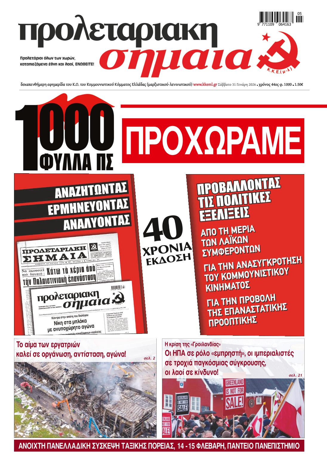 Γιατί είναι αναγκαία μια κομμουνιστική εφημερίδα όπως η Προλεταριακή Σημαία // Στενά δεμένη με την ανάπτυξη και τις καμπές του κινήματός μας, υποχρεωμένη να κοιτάζει στο μέλλον! // Προς τους αναγνώστες της Προλεταριακής Σημαίας // Μια Σημαία σκυτάλη στον μακρύ δρόμο μας // Χίλια φύλλα, λοιπόν // Από τη λινοτυπία στην «ψηφιακή εποχή»