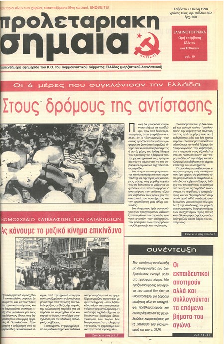 Φύλλο 362, 27 Απρίλη 1998. Για 6 ημέρες, εκπαιδευτικοί, νεολαία και λαός πάλεψαν έξω από τα εξεταστικά κέντρα του πρώτου διαγωνισμού του ΑΣΕΠ για τις προσλήψεις εκπαιδευτικών, αντιμετωπίζοντας τη βία των ΜΑΤ.