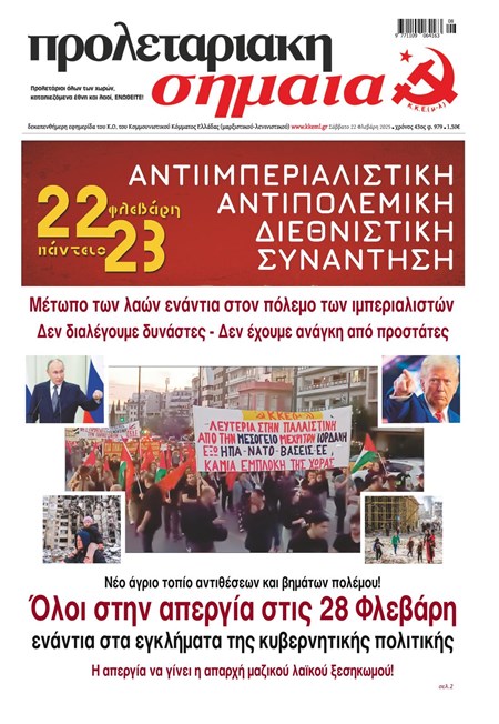 Το φύλλο 979 κυκλοφόρησε την πρώτη μέρα του διεθνιστικού διημέρου που διοργανώθηκε με πρωτοβουλία της οργάνωσής μας στις 22-23 Φλεβάρη 2025 με μεγάλη επιτυχία. Στο πρωτοσέλιδο υπάρχει και το κάλεσμα για την απεργία στις 28 Φλεβάρη, στη δεύτερη επέτειο από το έγκλημα των Τεμπών, στην οποία η συμμετοχή ήταν ιστορική.