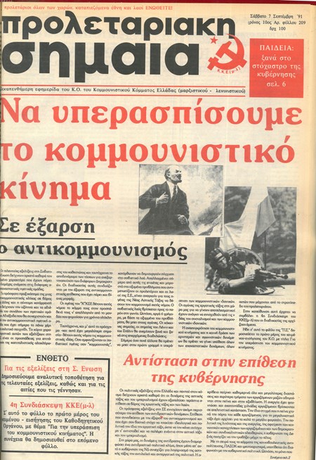 Φύλλο 209, 7 Σεπτέμβρη 1991. Οι ραγδαίες εξελίξεις στην ΕΣΣΔ κορυφώνονται και η αντικομμουνιστική εκστρατεία φτάνει σε επίπεδα υστερίας. Η ΠΣ δημοσιεύει το πρώτο μέρος του εισηγητικού κειμένου του ΚΟ για την 4ης Συνδιάσκεψη του ΚΚΕ(μ-λ), με τίτλο «Για την υπεράσπιση του κομμουνιστικού κινήματος»
