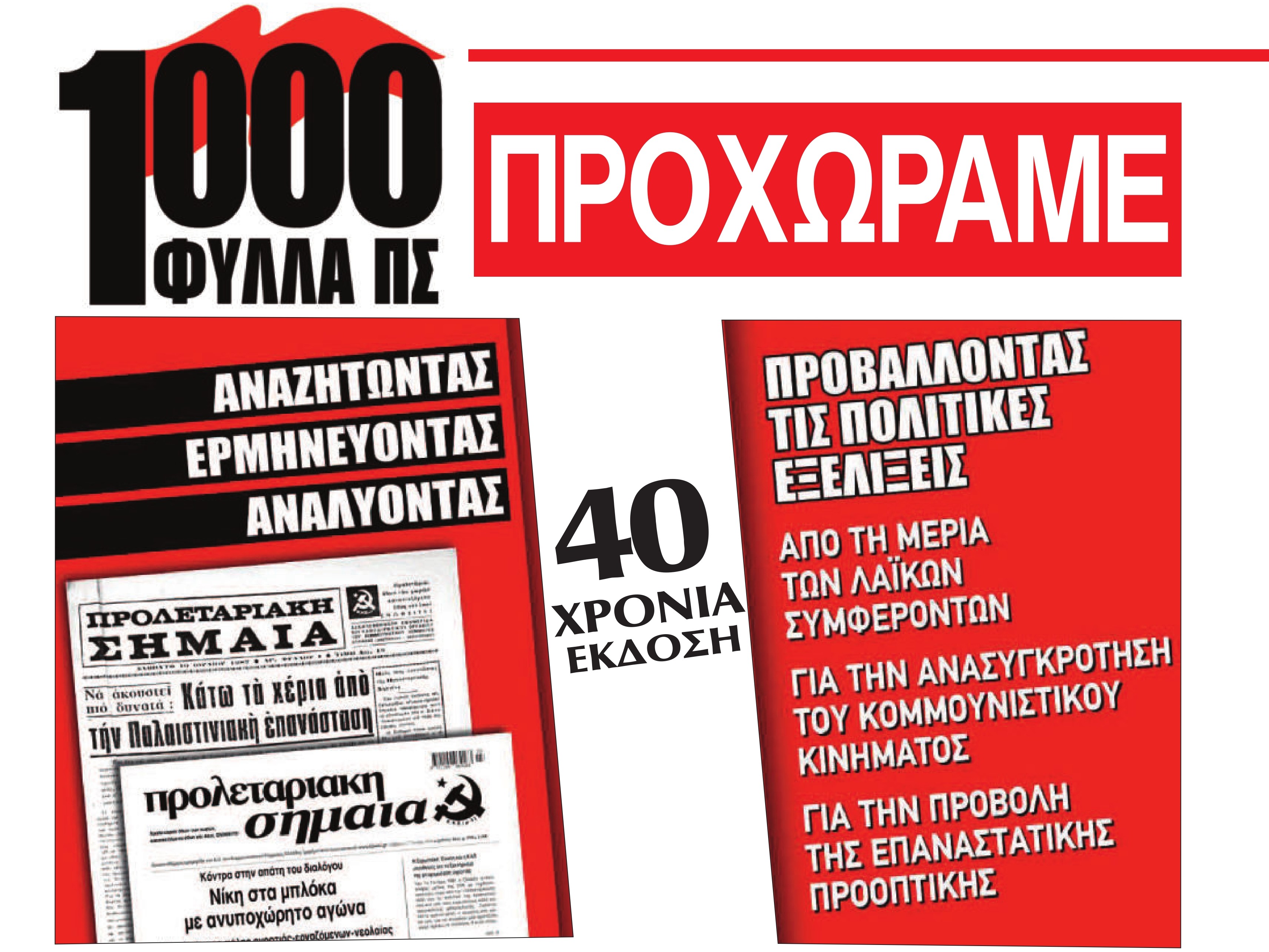 Αισίως φτάσαμε τα 1.000 φύλλα της Προλεταριακής Σημαίας στη 2η περίοδο μεταδικατατορικά, που διαρκεί 44 χρόνια.
