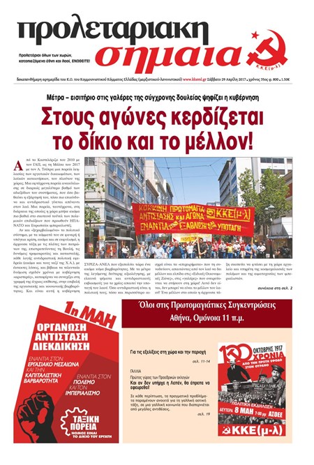Το πρωτομαγιάτικο φύλλο 800, που κυκλοφόρησε στις 29 Απρίλη του 2017, καλεί σε εκδήλωση για τα 100 χρόνια από την Οκτωβριανή Επανάσταση.