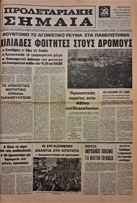 Δεύτερη περίοδος, φύλλο 167, 15 Δεκέμβρη 1979. Οι πολύμηνοι αγώνες του φοιτητικού κινήματος ενάντια στον ν. 815, που έχει ψηφιστεί από τον Αύγουστο του 1978, βρίσκονται σε κορύφωση και οδηγούν την κυβέρνηση Καραμανλή θα αναστείλει τον νόμο λίγες μόνο μέρες μετά την έκδοση του φύλλου, στις 3 Γενάρη του 1980.
