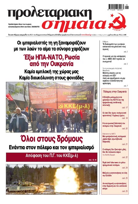 Το φύλλο 912, που κυκλοφόρησε στις 5 Μάρτη 2022, ήταν το πρώτο μετά τη ρωσική εισβολή στην Ουκρανία. Το πρωτοσέλιδο της ΠΣ καλεί σε μαζικό αντιπολεμικό-αντιιμπεριαλιστικό αγώνα, ενώ στο σχετικό αφιέρωμα επιχειρείται η ανάλυση μιας σύγκρουσης που μέχρι σήμερα αποτελεί πεδίο προετοιμασίας ενός παγκόσμιου μακελειού.
