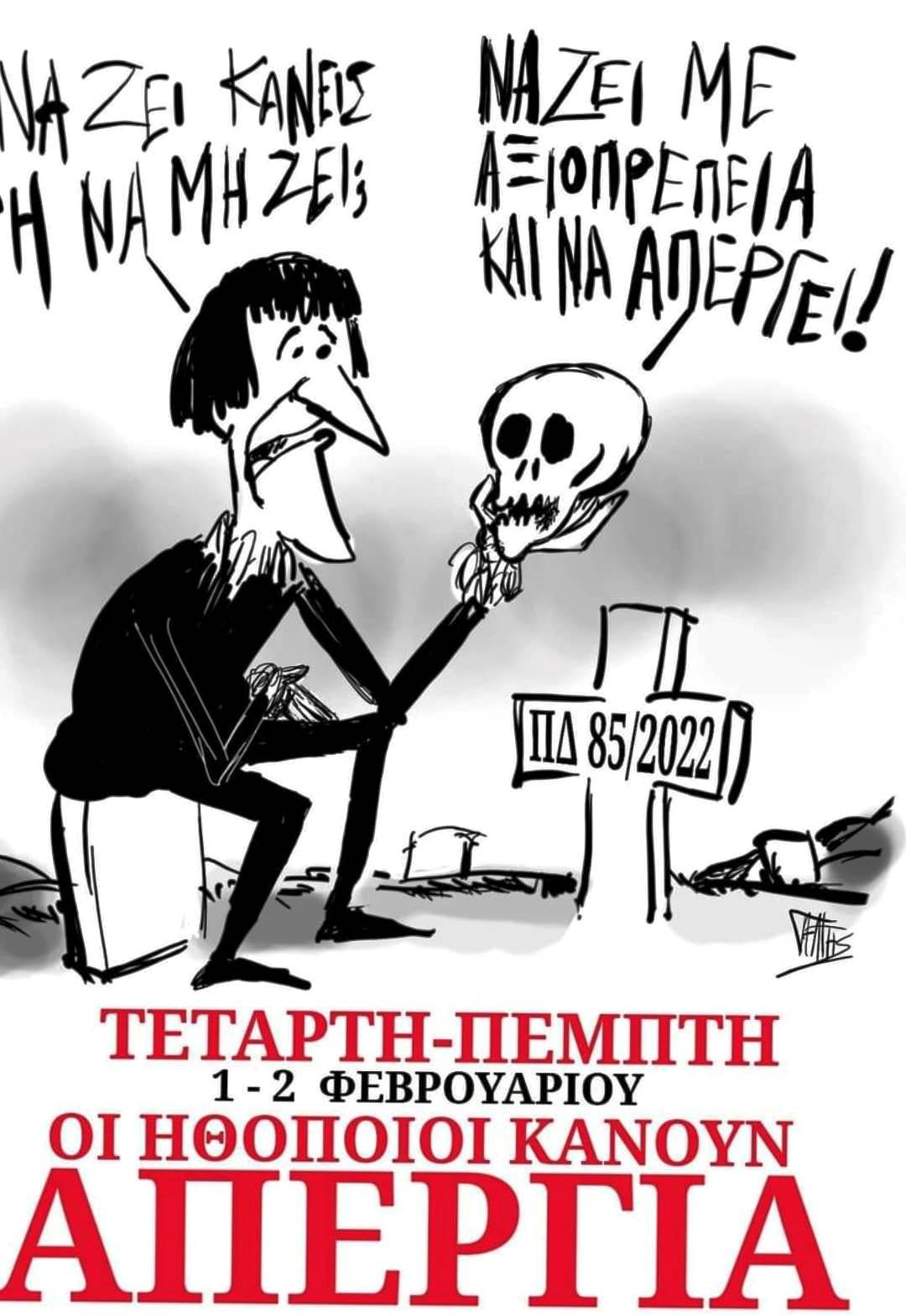 Η κυβέρνηση της ΝΔ είναι αμετακίνητη κι αποφασισμένη να βαθύνει τον εργασιακό μεσαίωνα χωρίς όρια στο μένος και τη βαρβαρότητά της. Με το ΠΔ 85/2022, επικυρώνει θεσμικά την κατάργηση επαγγελματικών δικαιωμάτων, την αμοιβή στην κλίμακα του ανειδίκευτου εργάτη και την αδυναμία (;) διεκδίκησης ΣΣΕ. Παράλληλα, προωθεί την ιδιωτική τριτοβάθμια εκπαίδευση, μιας και τα κολλέγια που, σε συνεργασία με ξένα πανεπιστήμια, διδάσκουν υποκριτική ξεφυτρώνουν ξαφνικά σαν μανιτάρια.