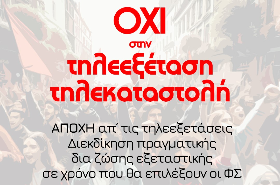 Η κυβέρνηση, αφού έχει επιστρατεύσει όλους τους μηχανισμούς της για να κατασυκοφαντήσει το φοιτητικό κίνημα, τα ξεπουλημένα ΜΜΕ για να λασπολογήσουν ενάντια στους φοιτητικούς αγώνες, αφού έχει στείλει τα ΜΑΤ σε καταλήψεις και διαδηλώσεις, αξιοποιεί το τελευταίο διάστημα και τις τηλε-εξετάσεις. Εκτός βέβαια από το μαστίγιο υπάρχει και το καρότο… Συντονισμένα κυβέρνηση, πρυτανικές αρχές και σύγκλητοι έχουν ανακοινώσει και προχωράνε αποφασιστικά σε τηλε-εξετάσεις. Σε μια σειρά σχολές έχουν ήδη αρχίσει να δίνονται τηλε-μαθήματα. Και απ’ ό,τι φαίνεται αυτό θα συνεχίσει για όλο το υπόλοιπο της εξεταστικής περιόδου.