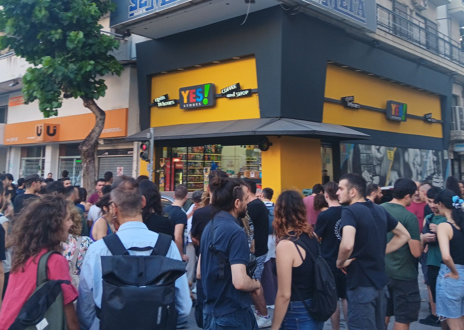 Για μήνες διεκδικούσε τα δεδουλευμένα του ο εργαζόμενος στα YES! STORES στην οδό Δελφών, ζητώντας επανειλημμένα να εφαρμοστεί η (υποχρεωτική) κλαδική ΣΣΕ του επισιτισμού. Με βάση τη διαφορά που προέκυπτε ανάμεσα στην ΕΓΣΣΕ και τη συγκεκριμένη κλαδική, στον εργαζόμενο οφείλονταν αρκετές χιλιάδες ευρώ. Ο εργοδότης, γνωστός ιδιοκτήτης πλήθους καφέ της Θεσσαλονίκης και γόνος μεγαλοπαράγοντα της ΝΔ στην πόλη, όχι μόνο αρνούνταν την οποιαδήποτε διεκδίκηση, αλλά μάλιστα μείωσε το ωράριο του εργαζόμενου, που προχώρησε σε παραστάσεις διαμαρτυρίας μαζί με άλλα μέλη του σχήματος «Αντεπίθεση των Εργαζομένων».