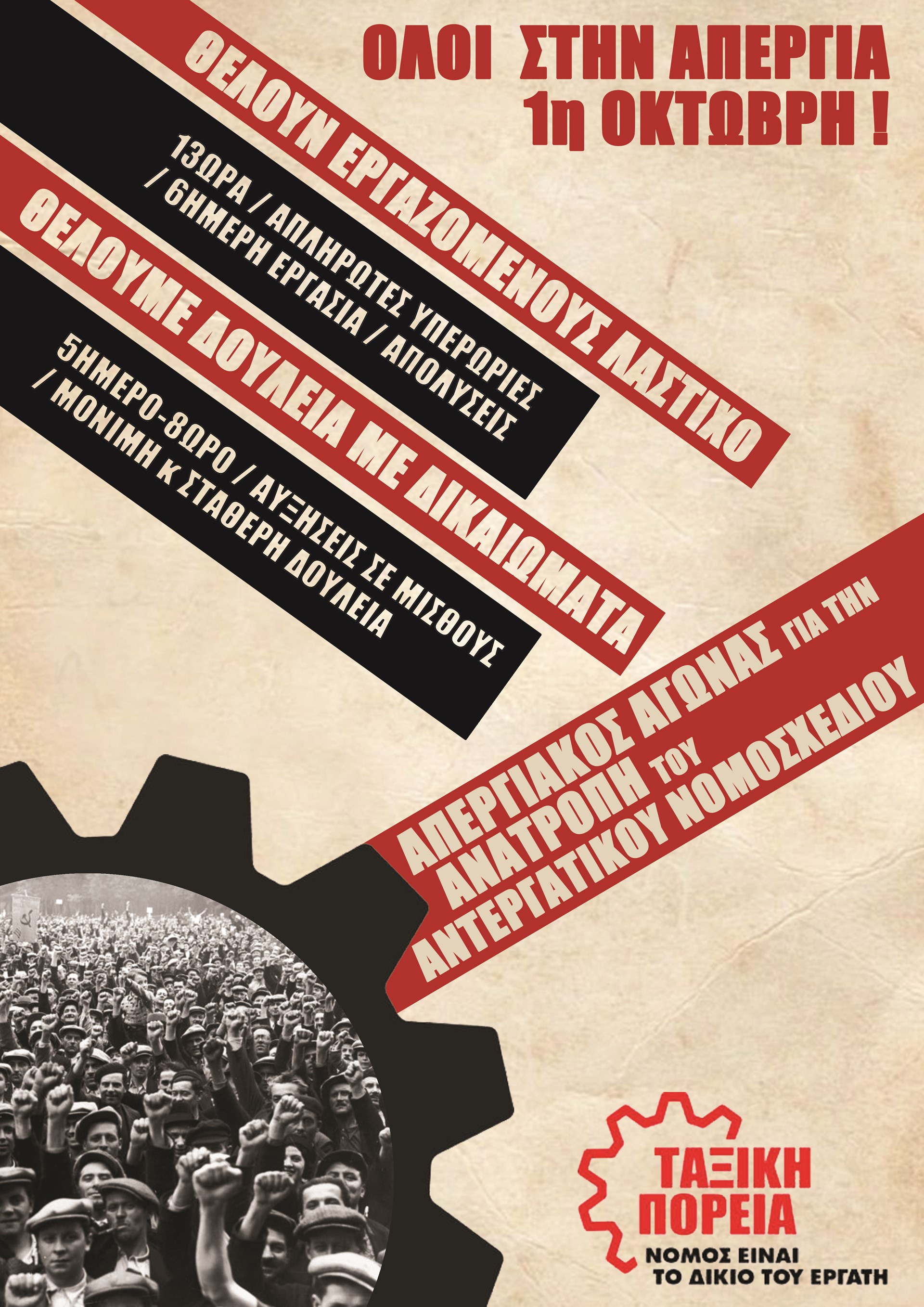 Ανάσα δεν αφήνει αυτό το σύστημα να πάρουν οι εργαζόμενοι και η νεολαία. Απ’ το πειθαρχικό στο δημόσιο, στον νόμο για τις διαγραφές φοιτητών και τα πειθαρχικά στα πανεπιστήμια, έως το νέο αντεργατικό «νομοσχέδιο Κεραμέως». Και δεν θα μας αφήσουν να πάρουμε άλλη ανάσα αν δεν τους σταματήσουμε εμείς. Αν δεν βγούμε στους δρόμους ν’ ανατρέψουμε την πολιτική τους και τα νέα μέτρα τους. Αυτή μπορεί να είναι η μόνη ρεαλιστική διέξοδος για τα εκατομμύρια των εργαζομένων και λαού, οι οποίοι καλούνται να σκύψουν το κεφάλι και να πουν κι ευχαριστώ στην κυβέρνηση η οποία νομοθετεί «αυτά που ζητάνε οι εργαζόμενοι» (όπως λέει η κυβερνητική προπαγάνδα). Αυτή η επιλογή, της πάλης, της οργάνωσης και του αγώνα, είναι η μόνη επιλογή η οποία μπορεί να βάλει φραγμό στην ανεξέλεγκτη πορεία ισοπέδωσης των δικαιωμάτων και κάθε σταθερά που είχε ο εργαζόμενος λαός έως τώρα. Αυτή η επιλογή απαιτεί την όσο πιο πλατιά, μαζική και οργανωμένη παρουσία των εργαζομένων στην Απεργία την 1η του Οκτώβρη.