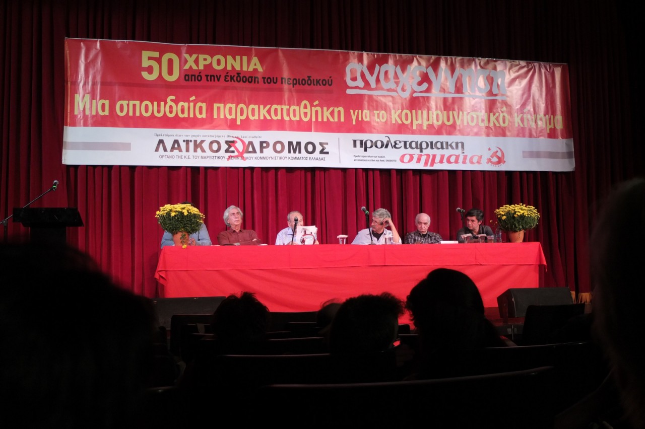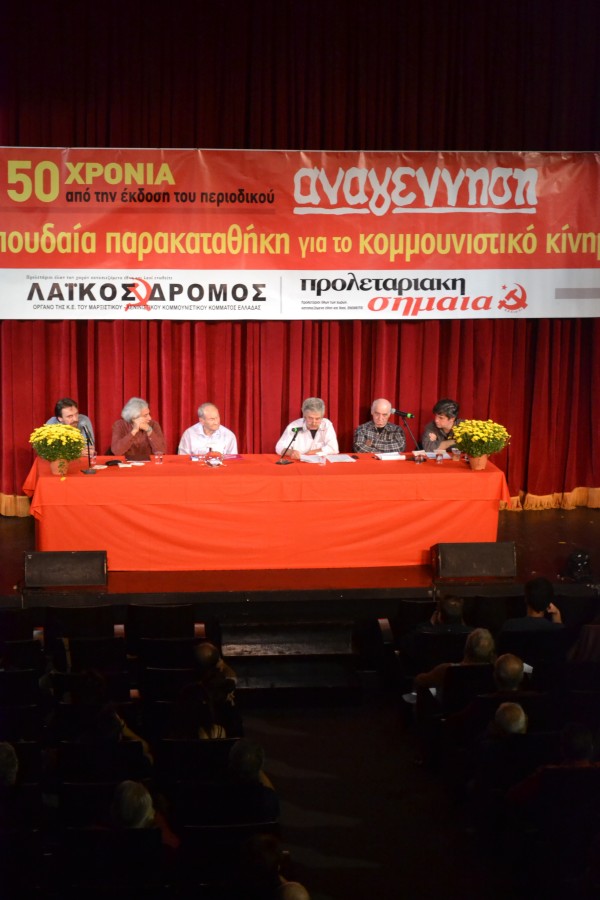 Σύντροφοι και συντρόφισσες Συναγωνιστές και Συναγωνίστριες, Φίλοι και Φίλες Σας καλωσορίζουμε στη σημερινή πολιτική εκδήλωση τιμής για τα 50 χρόνια από την έκδοση του περιοδικού «Αναγέννηση». Χαιρετίζουμε τους παλαίμαχους κομμουνιστές, αγωνιστές και αγωνίστριες της ηρωικής γενιάς του επαναστατικού ΚΚΕ, της εποποιίας του ΕΑΜ, του ΕΛΑΣ, της ΕΠΟΝ και του ΔΣΕ που παρευρίσκονται εδώ και εκείνους