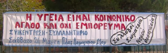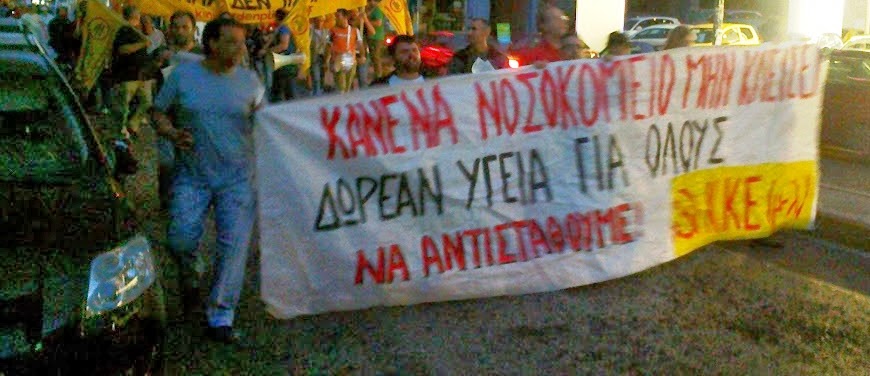 • Εδώ και δύο χρόνια το μέτωπο της Υγείας είναι ορθάνοιχτο για τρόικα, κεφάλαιο και κυβέρνηση. Τα νοσοκομεία του ΙΚΑ που έκλεισαν, τα οκτώ νοσοκομεία του ΕΣΥ σε Αττική και Θεσσαλονίκη που έβαλαν λουκέτο και συρρικνώθηκαν, η διάλυση της πρωτοβάθμιας περίθαλψης (ΕΟΠΥΥ, Κέντρα Υγείας, περιφερειακά ιατρεία κ.λπ.), τα ψυχιατρικά νοσοκομεία που οδεύουν προς κατάργηση, κινούνται