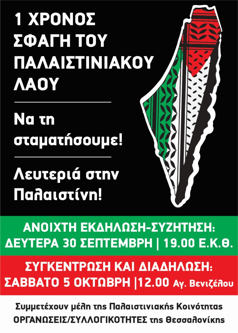 ΘΕΣΣΑΛΟΝΙΚΗ | Ένας χρόνος από τη γενοκτονία του παλαιστινιακού λαού - Να την σταματήσουμε! Λευτεριά στην Παλαιστίνη - Νίκη στην παλαιστινιακή αντίσταση