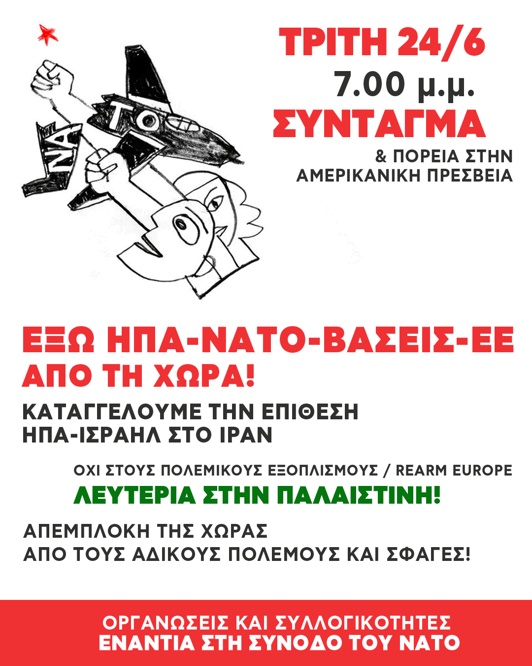 Τρίτη 24/6 διαδηλώνουμε ενάντια στη σύνοδο του ΝΑΤΟ και τον πόλεμο!