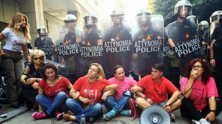 Με εξαιρετική δύναμη, πείσμα και αγωνιστικότητα συνεχίζουν οι καθαρίστριες του υπουργείου Οικονομικών τον αγώνα τους διεκδικώντας τη δουλειά τους. Ένας αγώνας κόντρα σε ένα πάνοπλο σύστημα, με όλα τα μέσα στη διάθεσή του. ΜΑΤ, ΥΜΕΤ, ασφαλίτες και δικαστήρια στην υπηρεσία του «εθνικού σχεδίου σωτηρίας», με άγρια τρομοκρατία, ξύλο και χημικά. Με προσαγωγές ενός φωτορεπόρτερ που