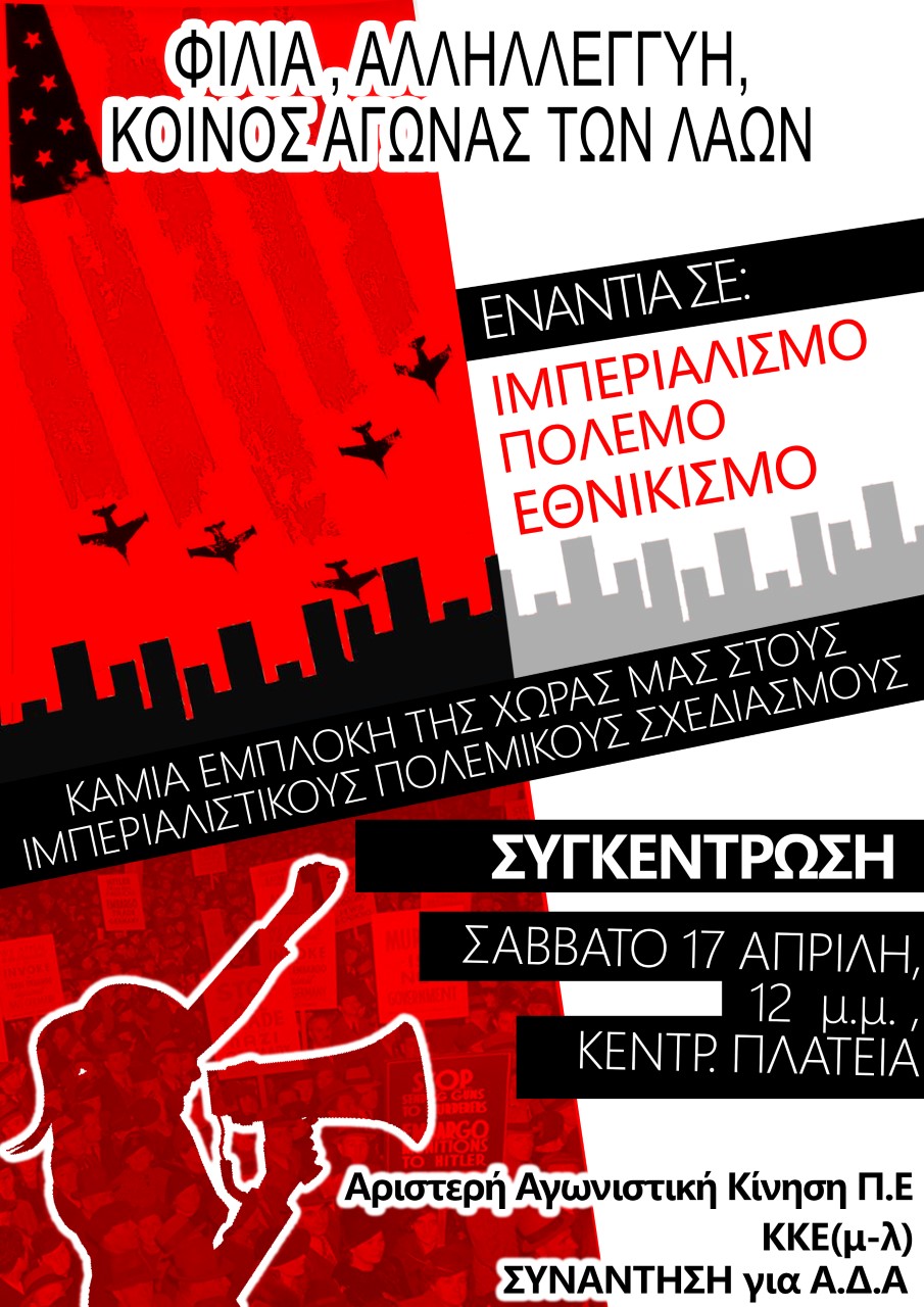 ΞΑΝΘΗ| Συγκέντρωση ενάντια σε ιμπεριαλισμό-πόλεμο-εθνικισμό (17/4)
