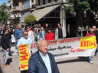 «ολιγομελείς αντιπροσωπείες» είχαμε και πάλι με στεφάνια και «συμβολικά» τιμούσαν την Πρωτομαγιά, χωρίς απεργιακές συγκεντρώσεις, πορείες και άλλα τέτοια. Επίσης στη κεντρική πλατεία, έγινε και συγκέντρωση από το ΠΑΜΕ (χωρίς βέβαια τα έγχρωμα αυτοκόλλητα στο έδαφος και τη παράταξη στυλ «γυμναστικών επιδείξεων» που είχαμε στην Αθήνα και που τόσο εκθειάστηκαν από τα συστημικά ΜΜΕ). Μια συγκέντρωση που ανακοινώθηκε στο «παρά πέντε», ενώ όλες τις προηγούμενες ημέρες, στις ανακοινώσεις των σωματείων που συσπειρώνονται στο ΠΑΜΕ (ιδιωτικοί υπάλληλοι, οικοδόμοι, γυναίκες κ.α.) δεν υπήρχε κανένα κάλεσμα για απεργιακή συγκέντρωση, μια στάση «υπευθυνότητας» και συμμόρφωσης με το σύστημα και την κυβέρνησή του που υπονομεύει παρά βοηθά την ανάπτυξη κινήματος.