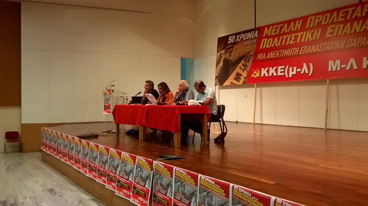 Πραγματοποιήθηκε, το Σαββατοκύριακο 4 και 5 Ιούνη, το διήμερο συζητήσεων που οργανώθηκε με πρωτοβουλία του ΚΚΕ(μ-λ) και του Μ-Λ ΚΚΕ, για τα 50 χρόνια από το ξέσπασμα της Μεγάλης Προλεταριακής Πολιτιστικής Επανάστασης στην Κίνα. Η αποτίμηση του διήμερου είναι σαφώς θετική, τόσο σε σχέση με τη συμμετοχή αγωνιστών και αγωνιστριών, όσο και σε σχέση με