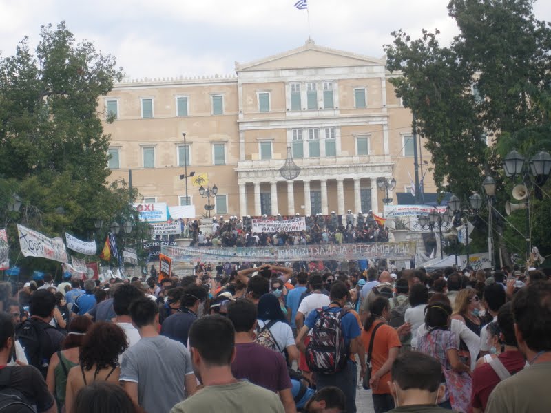 Απ΄τις 25 του Μάη, πλήθος λαού άρχισε να συρρέει μαζικά στο Σύνταγμα και τις άλλες πλατείες της χώρας. H αιτία γι’ αυτό ήταν το ξεχείλισμα της οργής του κόσμου, της νεολαίας, των εργαζόμενων, των ανέργων απέναντι στη μελανή πραγματικότητα στην οποία τους έχει οδηγήσει το σύστημα της εκμετάλλευσης και της εξάρτησης και το σάπιο πολιτικό