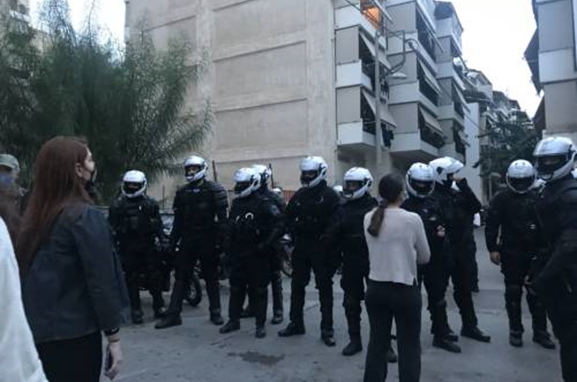 Παράλληλα η κυβέρνηση είχε δώσει εντολή να κλείσει ο εκεί σταθμός του Μετρό, όπως και άλλοι πέραν αυτών που είχαν ανακοινωθεί επίσημα (12 συνολικά), οπότε όσοι ήθελαν να φύγουν από εκεί με το Μετρό, είτε διαδηλωτές είτε περαστικοί, αναγκάστηκαν να κινηθούν ομαδικά προς τον σταθμό των Σεπολίων. Φτάνοντας είδαν ότι και εκεί ήταν κλειστός και ότι ήδη είχε συγκεντρωθεί, άσχετος με τις διαδηλώσεις, κόσμος που διαμαρτυρόταν. Μια παρέα παιδιών κινήθηκε προς διπλανό σπίτι συντρόφων τους για να πάρουν μια ανάσα και ξαφνικά εμφανίστηκε μια διμοιρία ΔΙΑΣ με τέτοια ταχύτητα που προκάλεσε την αντίδραση ακόμη και των περαστικών. Η διμοιρία κινήθηκε στοχοποιημένα προς την πολυκατοικία όπου ήδη είχαν φτάσει η μάνα με το ένα από τα παιδιά της και τους πρόλαβε στην είσοδο. Τους χτύπησαν άγρια και τους δύο, προσπάθησαν να τους συλλάβουν, ενώ προκλήθηκε μεγάλη αντίδραση από άλλους συντρόφους τους (όπως και περαστικούς), μέλη της ΑΝΤΑΡΣΥΑ, του ΝΑΡ και της νΚΑ. Η… αιτία ήταν ότι τους είδαν να πετάνε πέτρες κατά αστυνομικών. Ήταν τέτοια η αντίδραση του κόσμου που οι μπάτσοι χρειάστηκαν ενισχύσεις, ως και η «αύρα» έφτασε στα Σεπόλια και έκαναν χρήση βομβίδων κρότου λάμψης.
