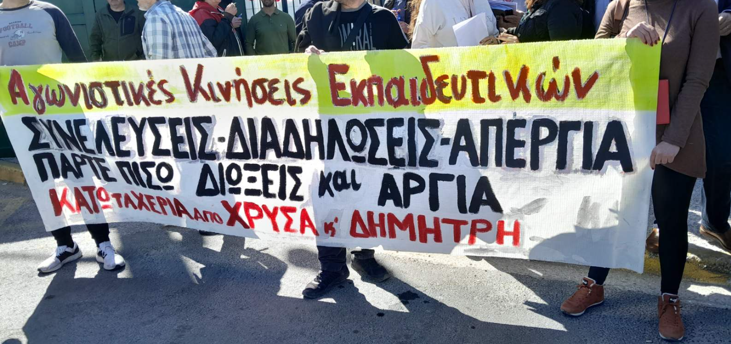 Αυτό που θα κριθεί, πάνω απ’ όλα, είναι, αν θα νικήσει η γραμμή του συμβιβασμού και της υποταγής των εργατοπατέρων και των ρεφορμιστών της συνδικαλιστικής ηγεσίας των ΟΛΜΕ/ΔΟΕ και ΑΔΕΔΥ ή η γραμμή της πάλης και του αγώνα, της αλληλεγγύης, της διεκδίκησης και της αναμέτρησης. Είναι η γραμμή που δεν υποτάχτηκε στον δυσμενή συσχετισμό αλλά στηρίχτηκε στις δυνάμεις της και απευθύνθηκε με εμπιστοσύνη στη βάση του κλάδου των εκπαιδευτικών και πλατιά στον λαό. Ποτέ δεν επικαλέστηκε την αστική νομιμότητα, αλλά στηρίχτηκε στο δίκιο. Αυτή τη γραμμή εκφράζουν με την αγωνιστική τους στάση η Χρύσα και ο Δημήτρης και το κίνημα που αναπτύχθηκε για την υπεράσπισή τους, οι αγωνιστές και οι συλλογικότητες που πήραν στην πλάτη τους την υπόθεση των συνδικαλιστικών διώξεων και απολύσεων και συντόνισαν τη δράση τους με τις ανοιχτές συνελεύσεις τους.