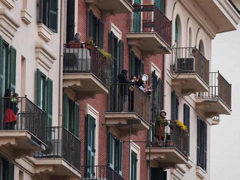 Σ’ όλο αυτό το διάστημα, η ατομική ευθύνη γίνεται ασήκωτο βάρος, πίσω από τις κλειστές πόρτες. Κάτι πρέπει να μαλακώσει τη μιζέρια και την τρομολαγνεία των ημερών. Α, και την επιβεβλημένη μοναξιά. Οι γείτονες Ιταλοί, που ζουν με τον εφιάλτη των φέρετρων σταθερά, αρχίζουν να βγαίνουν στα μπαλκόνια. Αρχικά χαιρετιούνται. Προσπαθούν να επικοινωνήσουν, να ενθαρρύνουν ο ένας τον άλλον. Να αντέξουν. Ξεκινούν να τραγουδούν. Όλοι μαζί. Στα μπαλκόνια. Στη βία και την πίεση των ημερών, απαντούν με μουσική. Εδώ, ακούγεται πού και πού, μια μουσική δυνατά. Σε κάποια μπαλκόνια κάποιοι χορέψαν κιόλας. Χαμογέλασε η πολυκατοικία τους.
