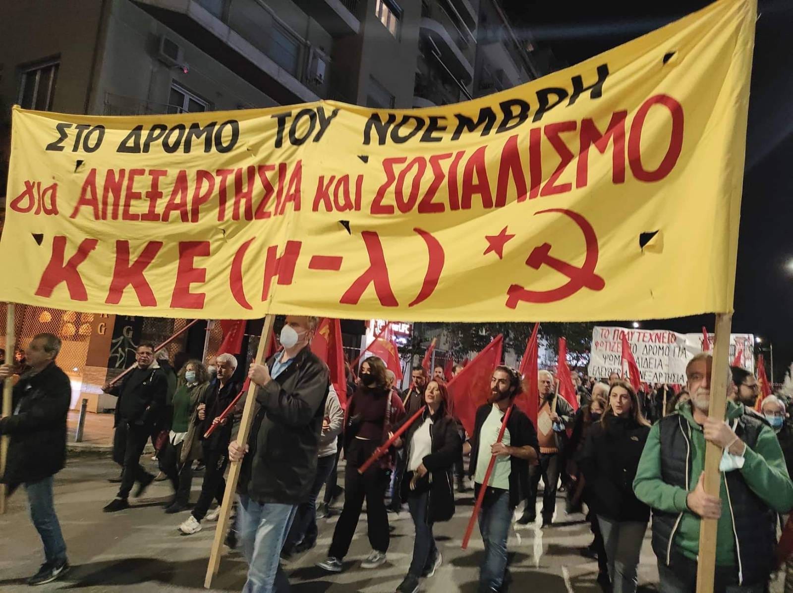Με επιτυχία πραγματοποιήθηκαν οι διαδηλώσεις για το Πολυτεχνείο σε μια σειρά πόλεις της Ελλάδας. Δεκάδες χιλιάδες κόσμου πλαισίωσαν πανελλαδικά τις διαδηλώσεις αυτές, σε συνέχεια των επίσης μαζικών απεργιακών κινητοποιήσεων της 9ης Νοέμβρη. Το ΚΚΕ(μ-λ), οι Αγωνιστικές Κινήσεις Εκπαιδευτικών, οι Αγωνιστικές Κινήσεις και η Μαθητική Αντίσταση σε μια σειρά πόλεις με μαζικά και ζωντανά μπλοκ ανέδειξαν τον αντιιμπεριαλιστικό χαρακτήρα της εξέγερσης του Νοέμβρη και τόνισαν την επικαιρότητα της πάλης για Ψωμί – Παιδεία – Ελευθερία – Ανεξαρτησία. Κατήγγειλαν την πολιτική της εξάρτησης, που μετατρέπει τη χώρα σε μια απέραντη αμερικανοΝΑΤΟϊκή βάση, την εμπλοκή της χώρας μας στον πόλεμο στην Ουκρανία και τις ενδοϊμπεριαλιστικές αντιθέσεις, που γεννούν πολέμους, θανάτους, προσφυγιά, φτώχεια. Κατήγγειλαν την πολιτική της φασιστικοποίησης και της καταστολής, που τσακίζει δημοκρατικά δικαιώματα και ελευθερίες, που πνίγει στα χημικά και τα δακρυγόνα τον κόσμο που διαδηλώνει.