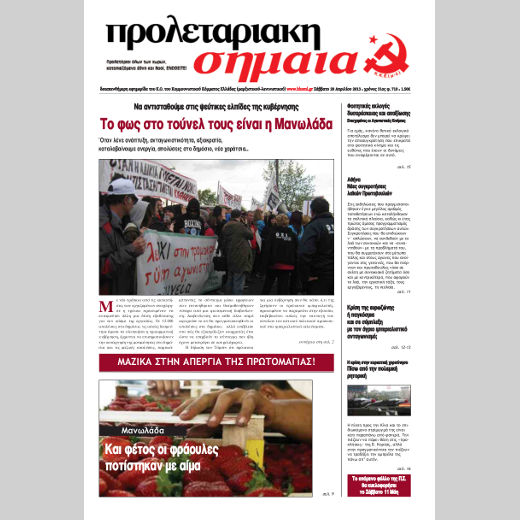 Διαβάστε όλο το φύλλο εδώ. Περιεχόμενα: Σελίδα 1 Να αντισταθούμε στις ψεύτικες ελπίδες της κυβέρνησης - Το φως στο τούνελ τους είναι η Μανωλάδα ΜΑΖΙΚΑ ΣΤΗΝ ΑΠΕΡΓΙΑ ΤΗΣ ΠΡΩΤΟΜΑΓΙΑΣ! Μανωλάδα - Και φέτος οι φράουλες ποτίστηκαν με αίμα   Σελίδα 2 (Πολιτική) Να αντισταθούμε στις ψεύτικες ελπίδες της κυβέρνησης – Το φως στο τούνελ τους είναι η Μανωλάδα Στις