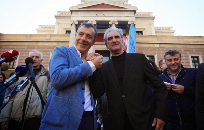 «Πολιτική χωρίς επαγγελματίες πολιτικούς». Κάνοντας πράξη το σύνθημα, το Ποτάμι κατεβαίνει στις εκλογές με τη φρεσκάδα νέων, χωρίς κομματικό παρελθόν, πολιτικών! Λυκούδης, Ψαριανός και άλλα ορφανά της ΔΗΜΑΡ, Τατσόπουλος, Λυμπεράκη, Σκυλακάκης (της Δράσης του Μάνου), Βαλλιανάτος και άλλοι πολλοί δημοσιογράφοι, καλλιτέχνες, κομματικά άστεγοι σήμερα, ακολουθούν τον ρου του Ποταμιού. Μαζί τους και ο απαραίτητος «πράσινος