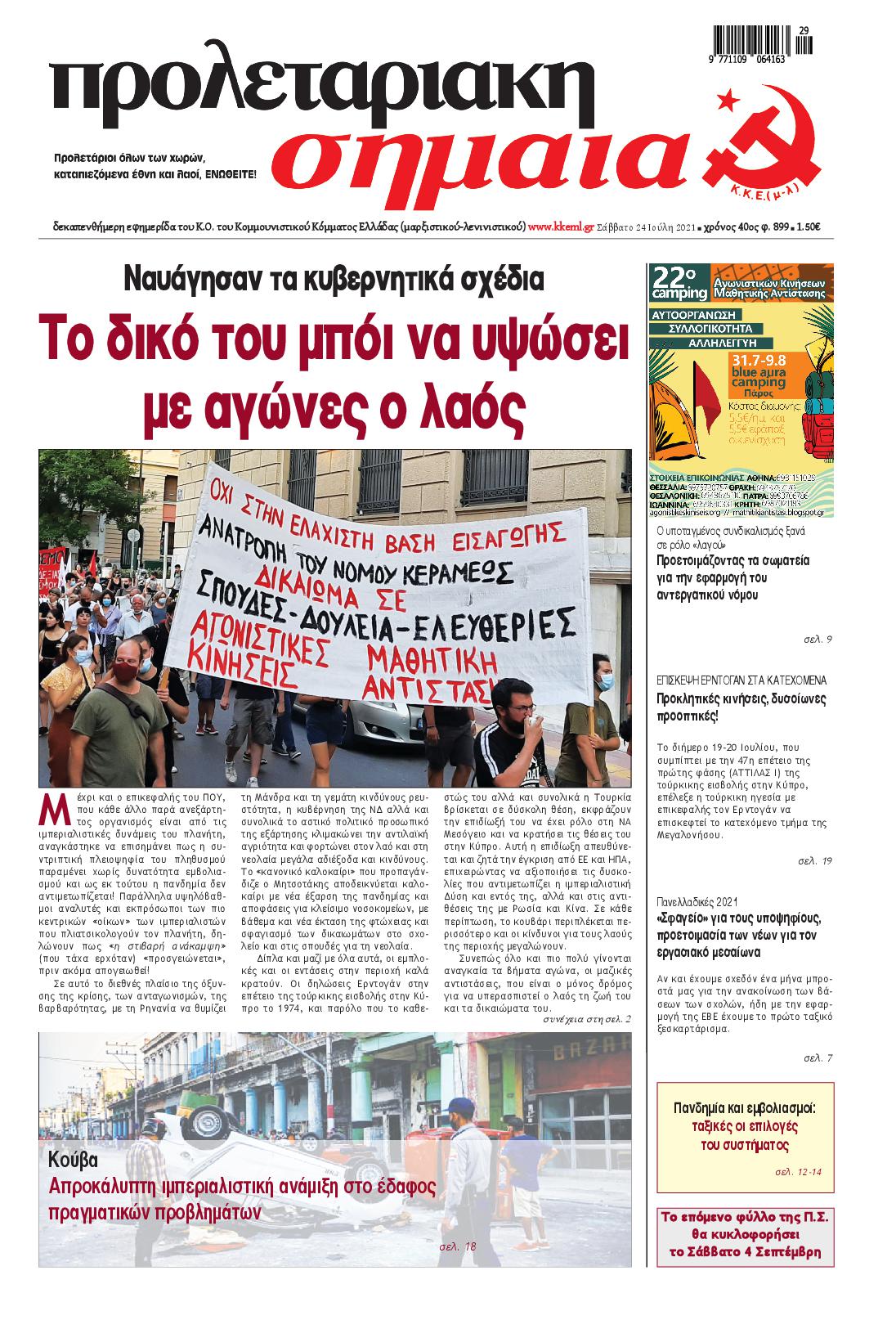 Προλεταριακή Σημαία: Διαβάστε στο φύλλο 899 που κυκλοφορεί το Σάββατο 24 Ιούλη 2021